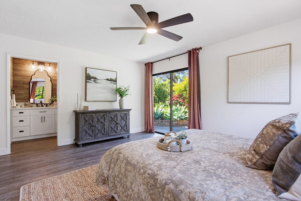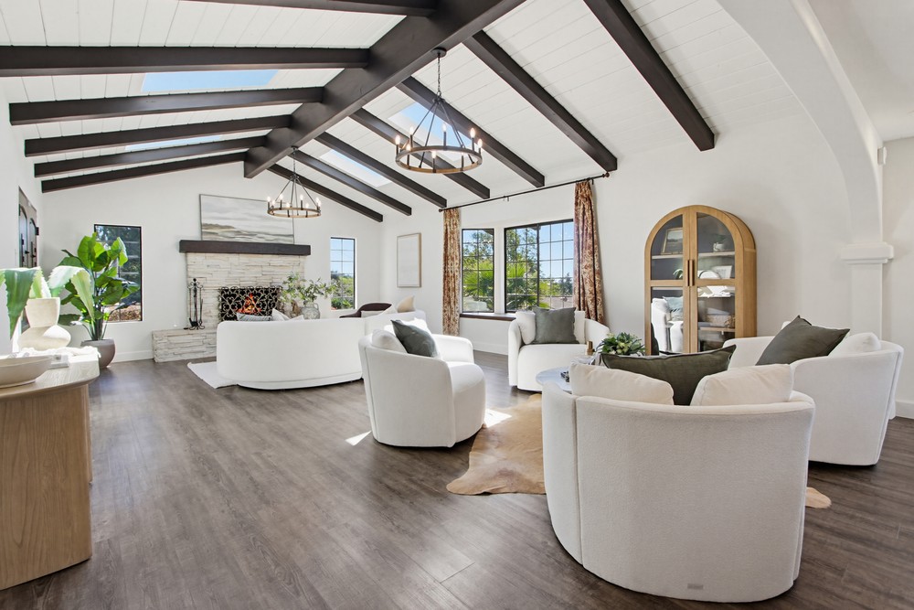 Welcome home to your private Vista retreat! Situated on a quiet no-outlet street, this beautifully updated single-story home offers the perfect blend of space, comfort and functionality. Featuring 3 bedrooms and 2 bathrooms within a generous floorplan, the home has a thoughtfully designed open floor plan perfect for both everyday living and entertaining. The living room has high open beam ceilings with skylights and an abundance of windows filling the room with natural light. Updated a few years ago, the property is move-in ready allowing you to start enjoying the home from day one. Cozy up next to either of the two fireplaces or stay cool with central A/C during warmer days. Enjoy waking up in your private primary suite featuring a large walk-in closet and spacious ensuite bathroom. All of this and more, set on over half an acre! The expansive backyard has endless potential and ample room for parking more vehicles, RVs, boats, etc. Don’t miss your chance to own your own slice of paradise in Vista.